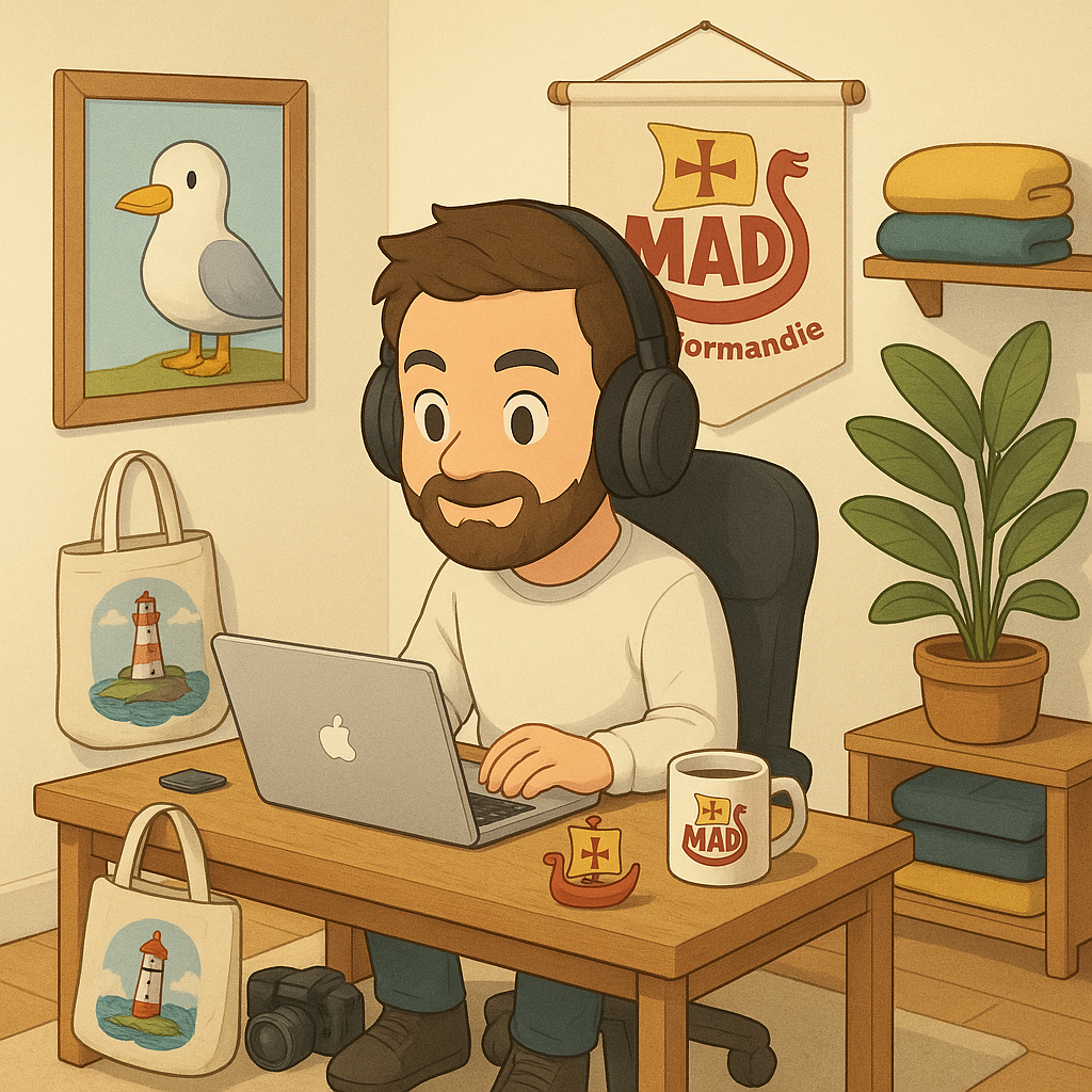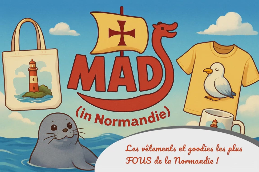 Des t-shirts, sweats et accessoires illustrés en Normandie. Pensés près de Granville et imprimés à la demande. Chez MAD (in Normandie), pas de surstock, pas de gaspillage : juste le bon produit au bon moment.